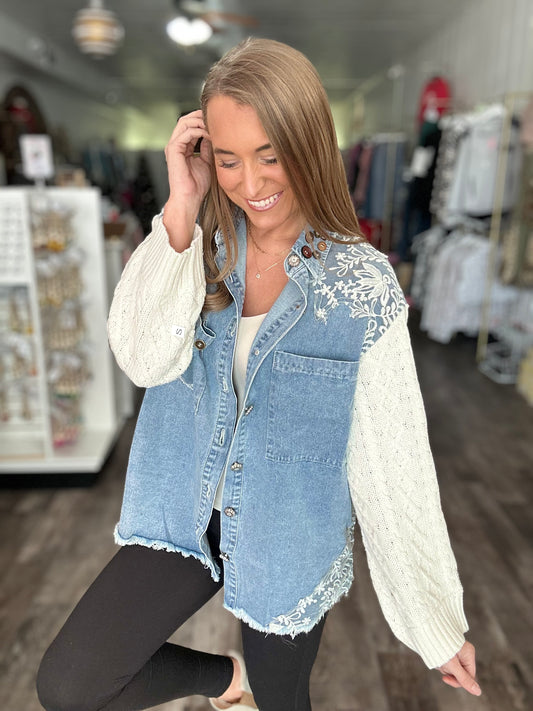 All My Love Sweater Sleeve Shacket (Charcoal)