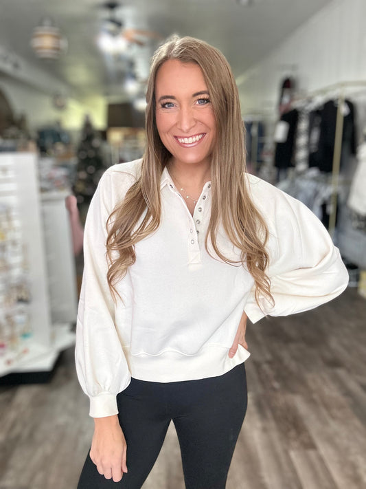 Becca Button Pullover (Pearl) - Simply Southern