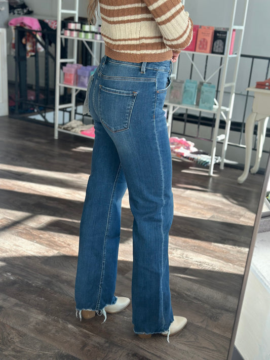Sold outDemi Destoyed Mid-Rise Flare Denim