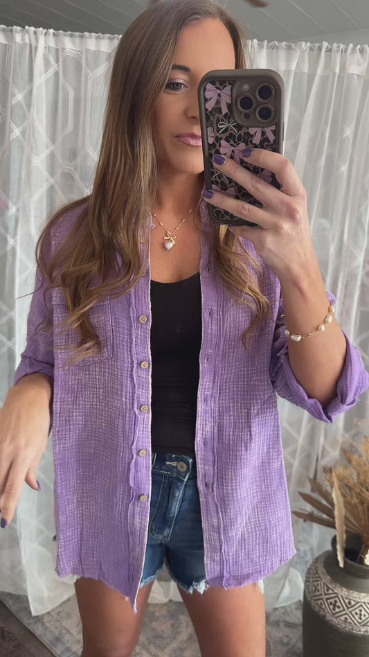 Out of Range Gauze Knit Button Down - Washed Lavender