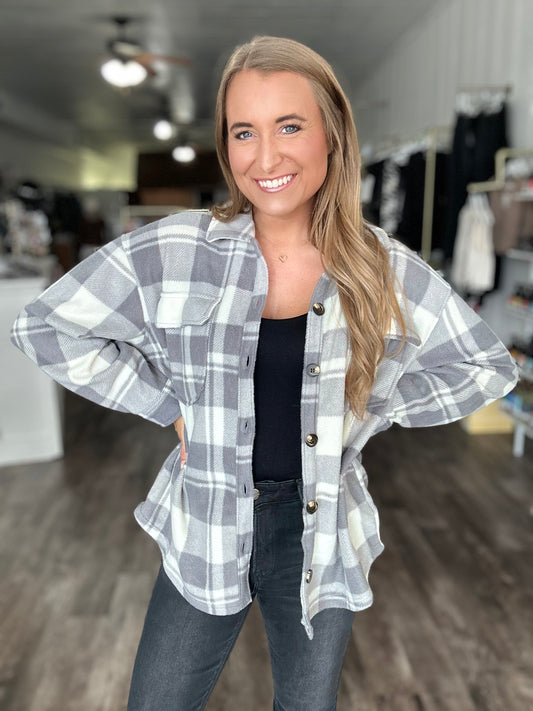 Wait On Me Plaid Fleece Shacket - Grey