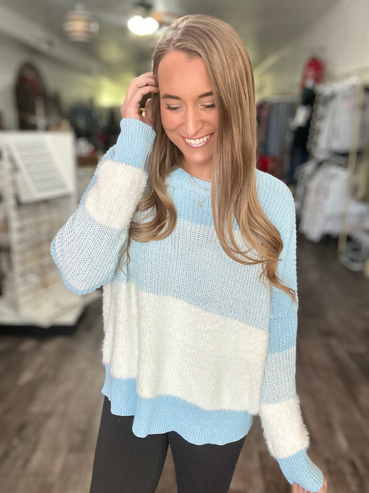Snowy Days Fuzzy Knit Sweater (Blue)