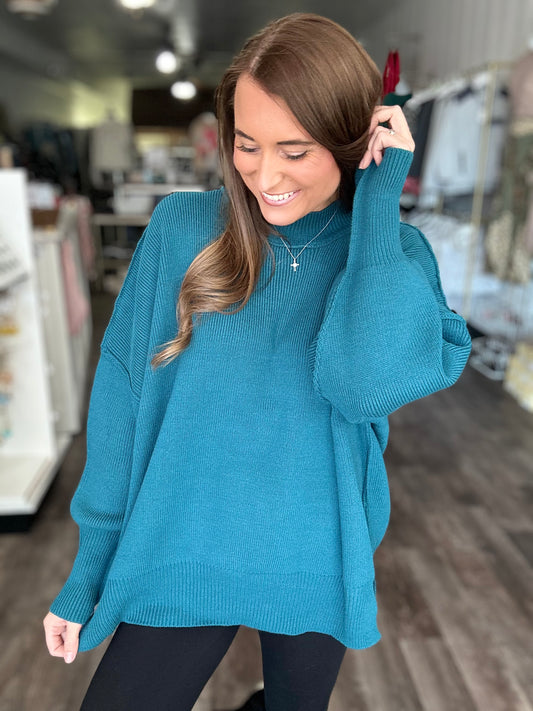 Daydreamer Oversized Mock Neck Sweater - Jade