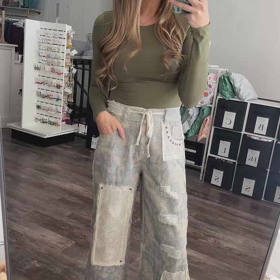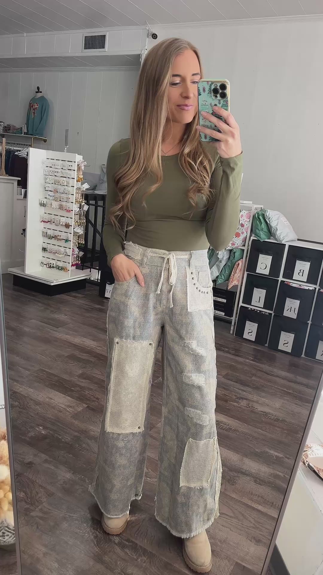Fit: True to size. Adjustable drawstring and stretchy waist. Ashley is wearing size small, her usual denim size is 3. She is 5’7”, 140lbs.