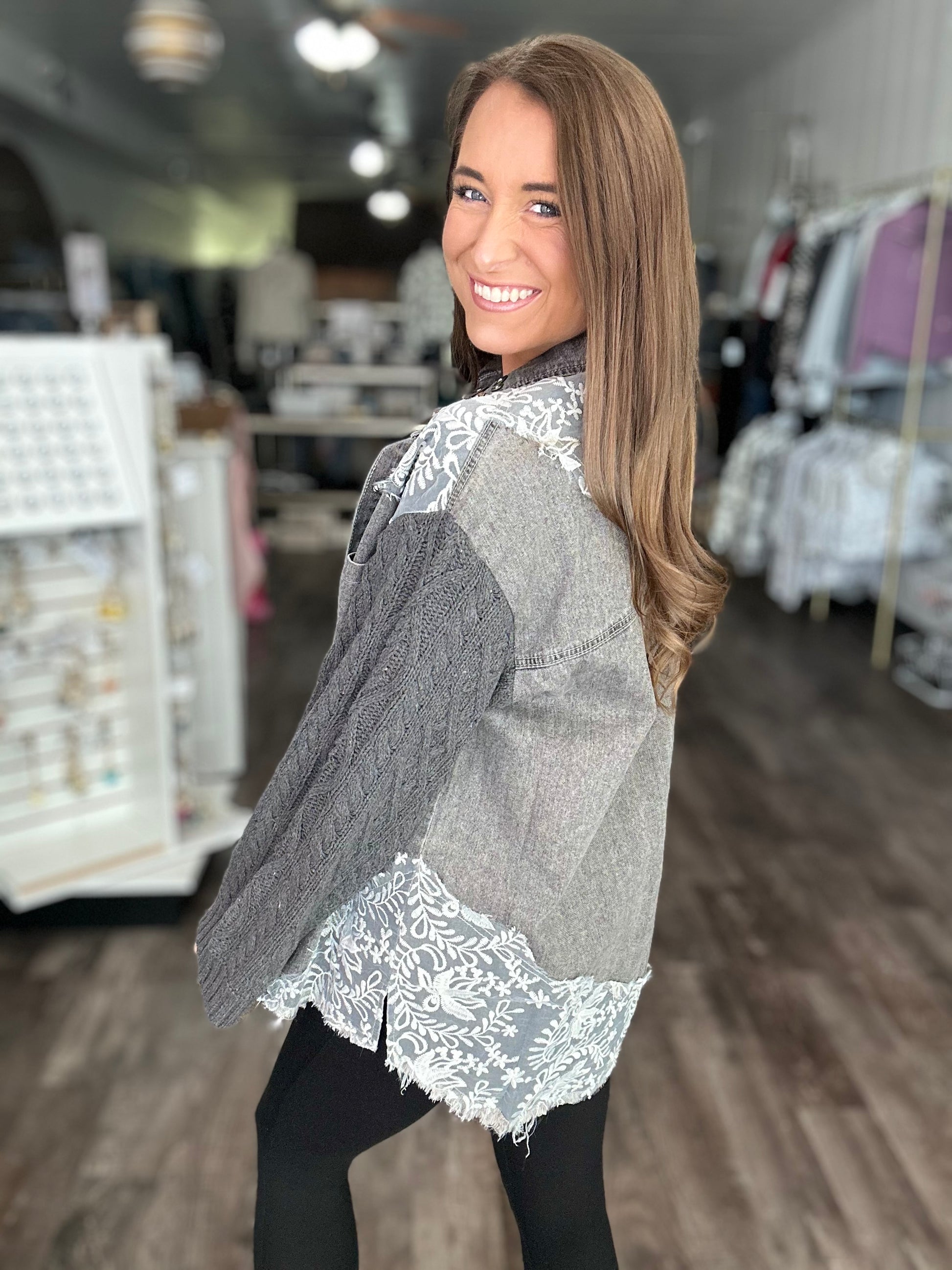 All My Love Sweater Sleeve Shacket (Charcoal)