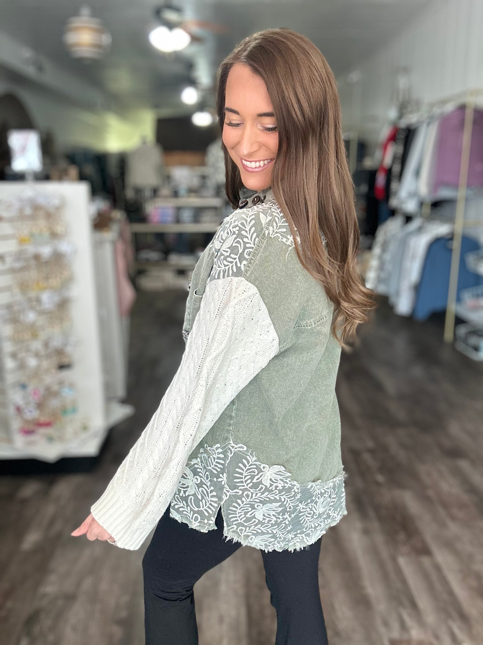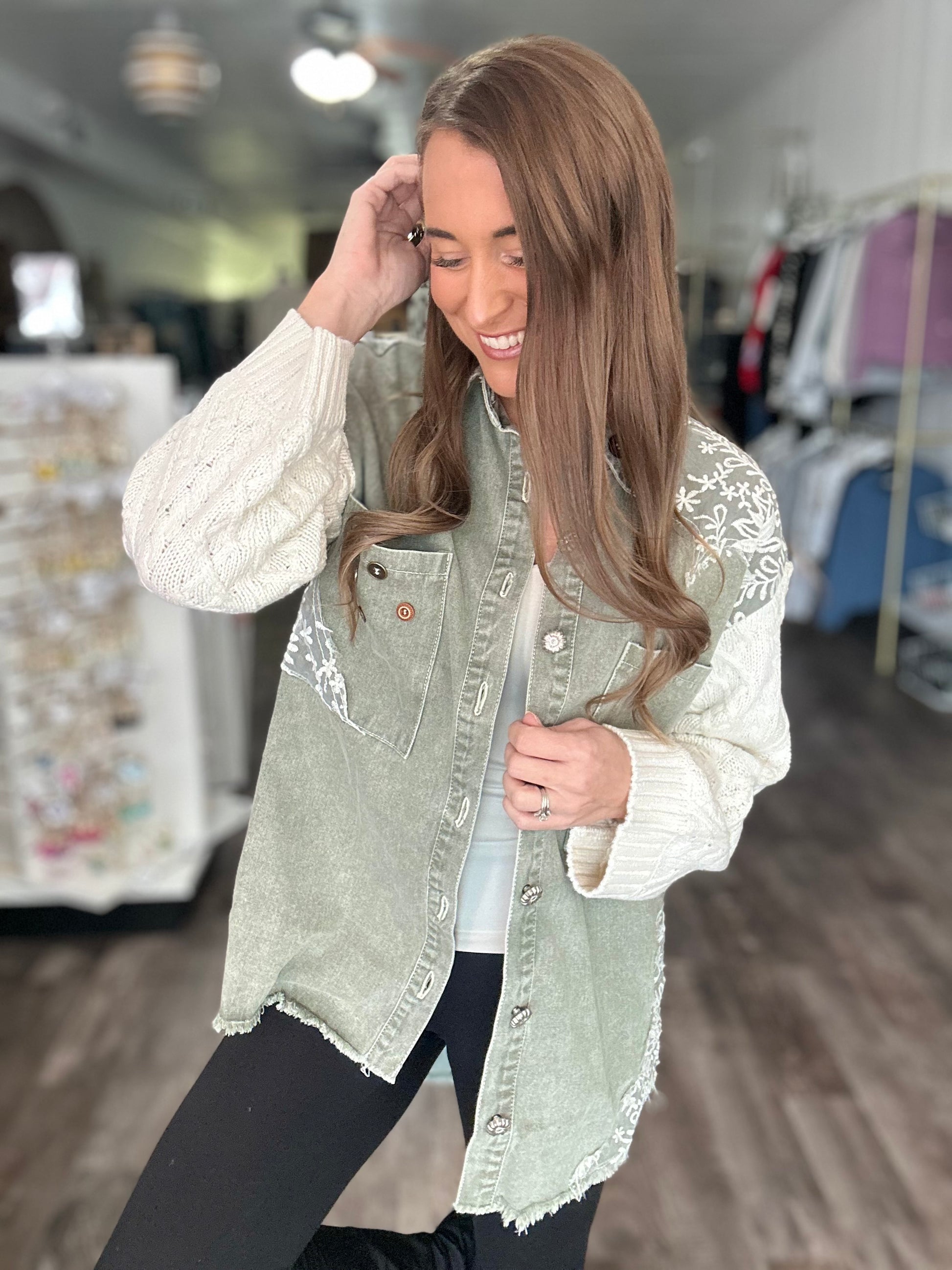 All My Love Sweater Sleeve Shacket (Olive)