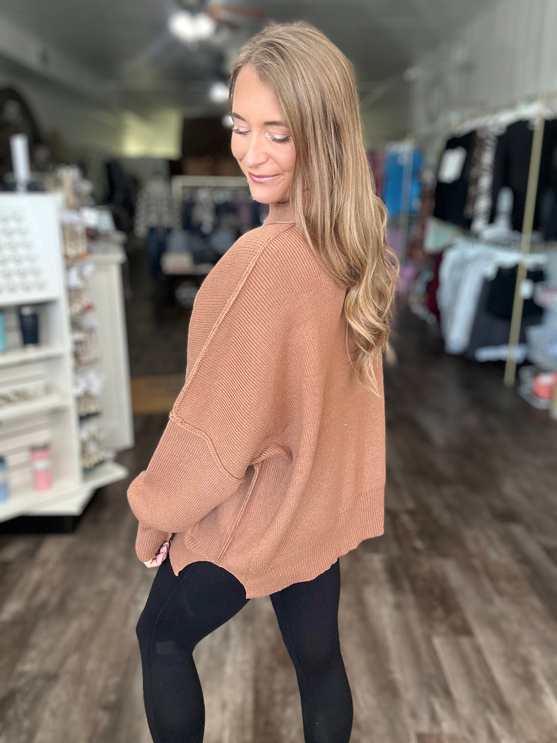 Daydreamer Oversized Mock Neck Sweater - Camel