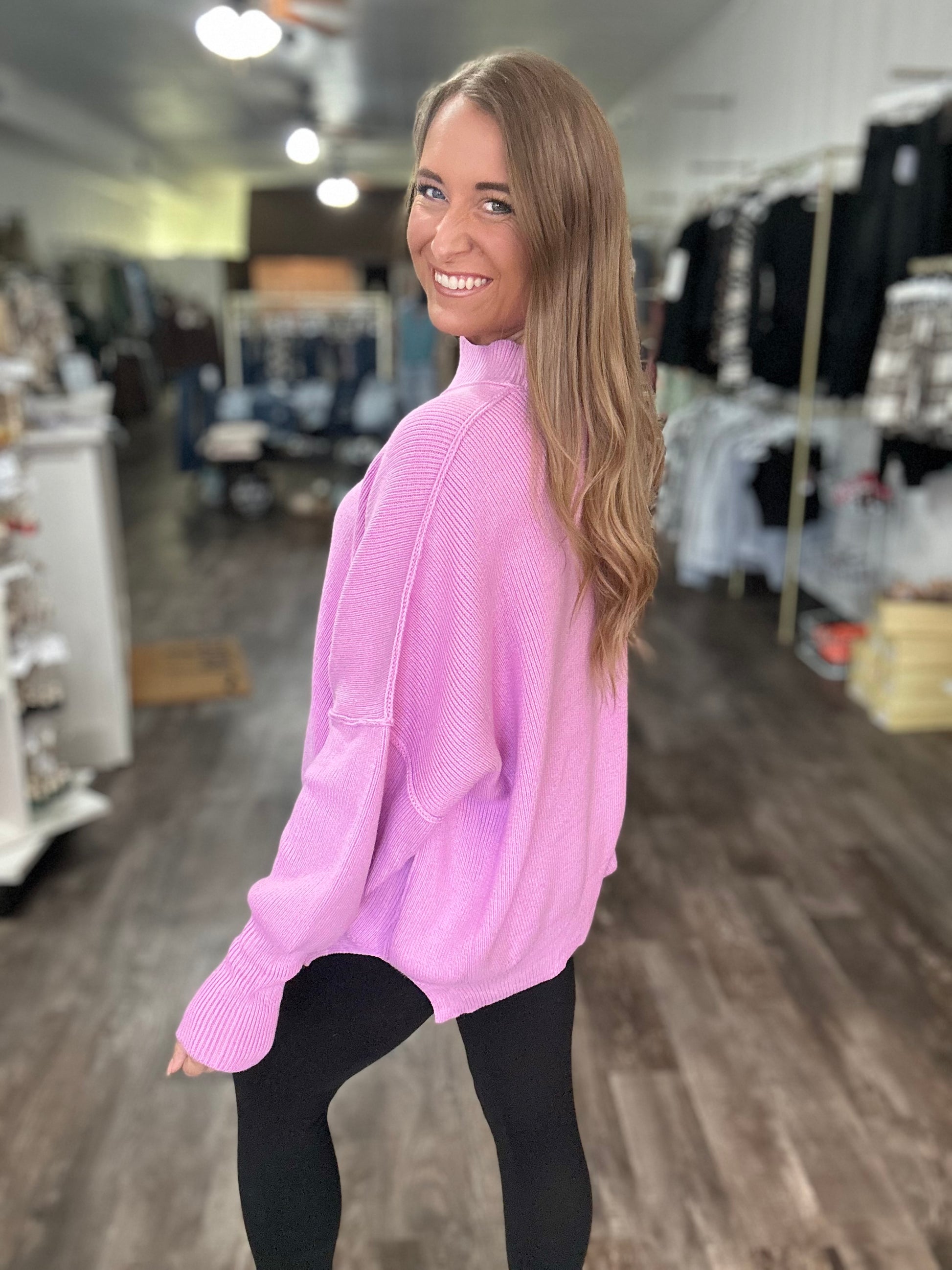 Daydreamer Oversized Mock Neck Sweater - Mauve