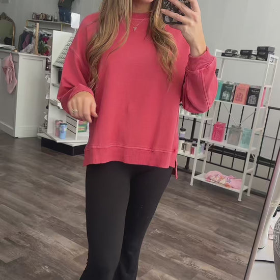 Fit: True to size with an intentional oversized fit. Ashley is wearing size small, her usual size. She is 5’7”, 140lbs, 36D bust.