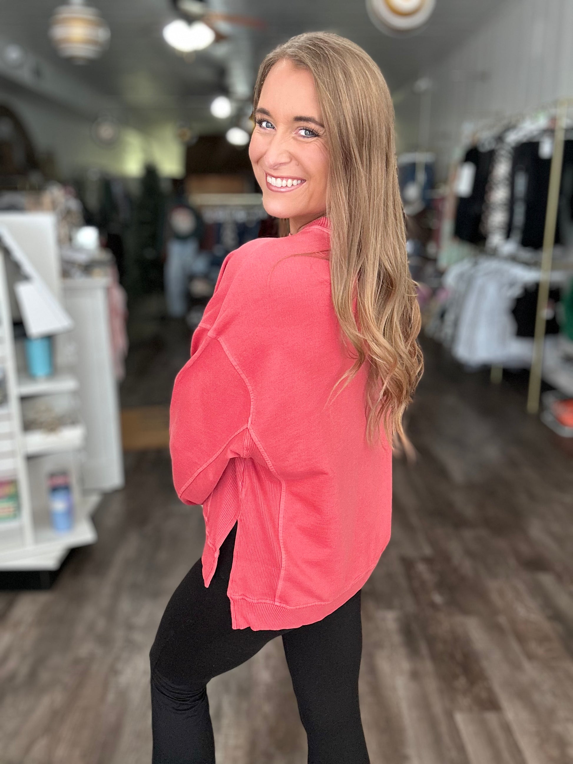 Fit: True to size with an intentional oversized fit. Ashley is wearing size small, her usual size. She is 5’7”, 140lbs, 36D bust.