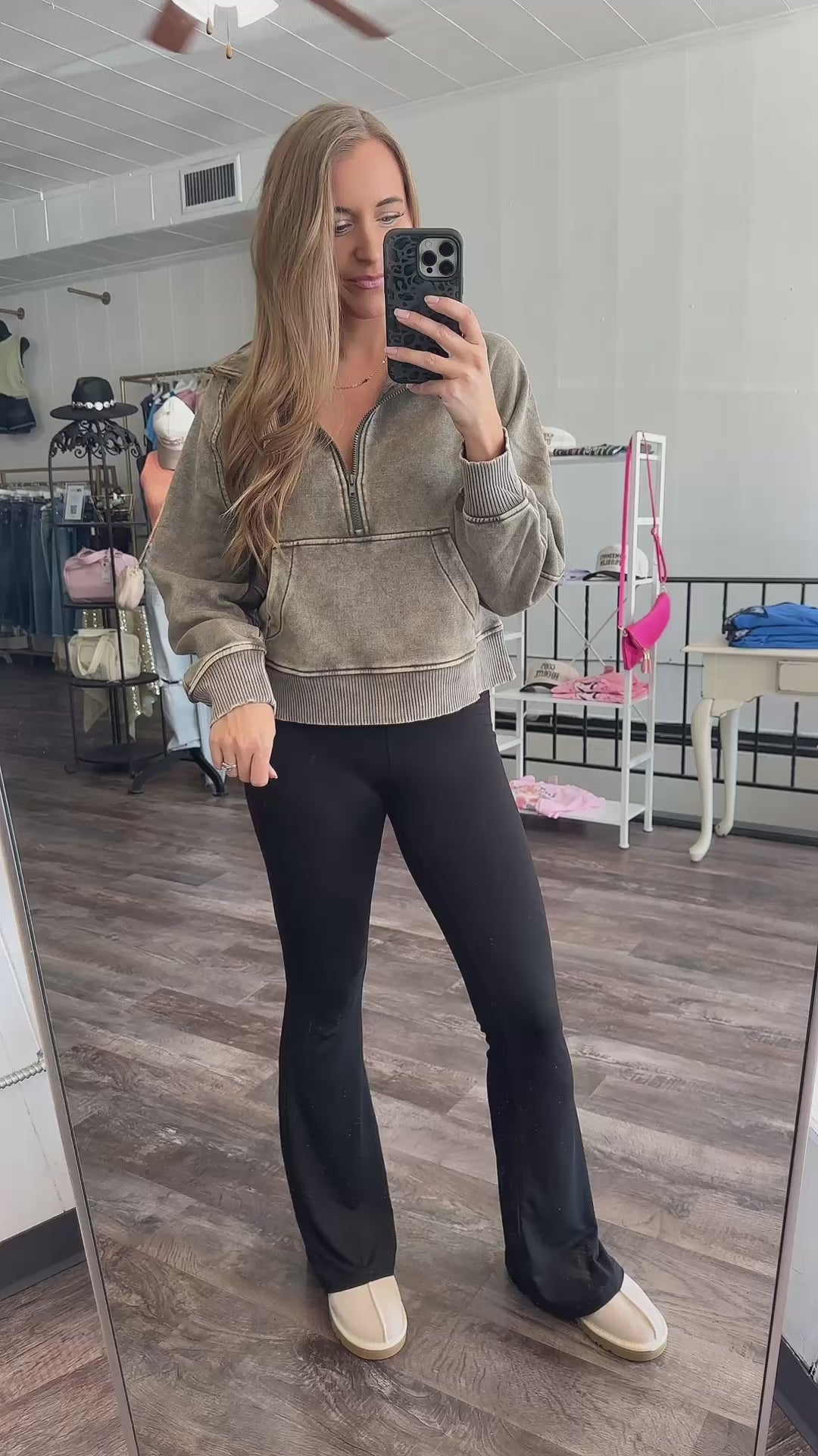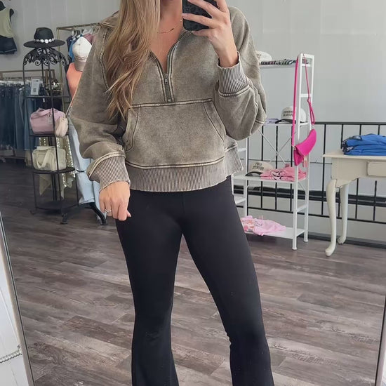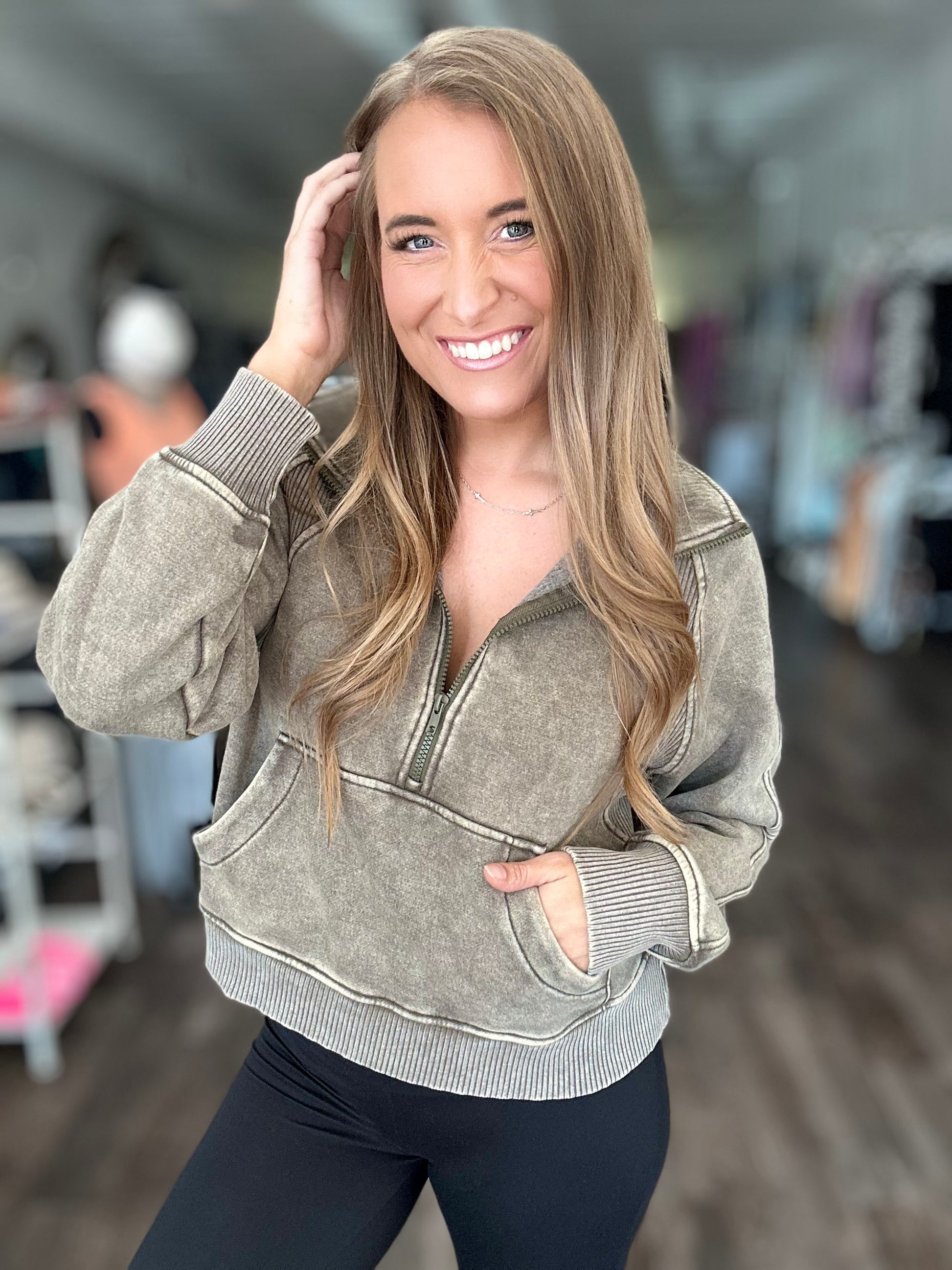 Dreaming of Fall Acid Wash Quarter Zip - Olive