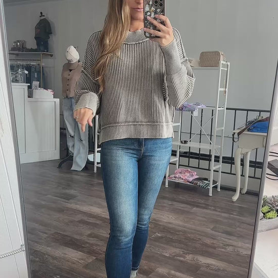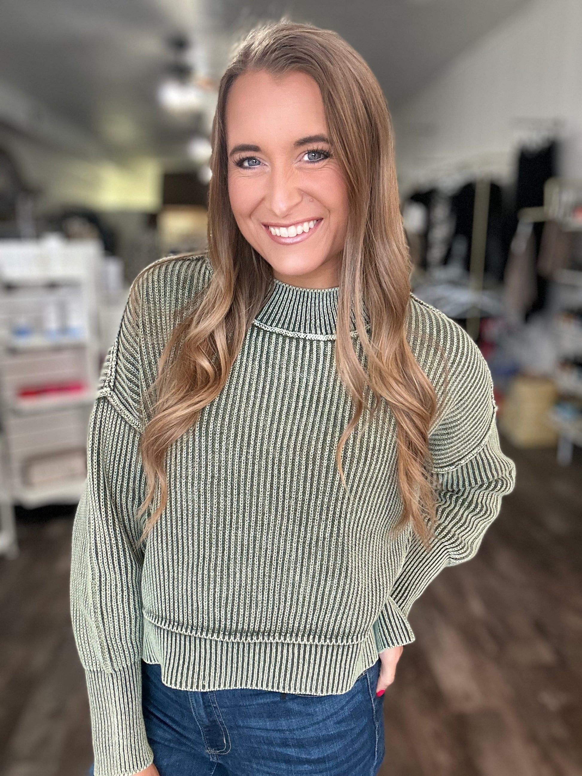 Drive Them Wild Ribbed Sweater - Washed Olive