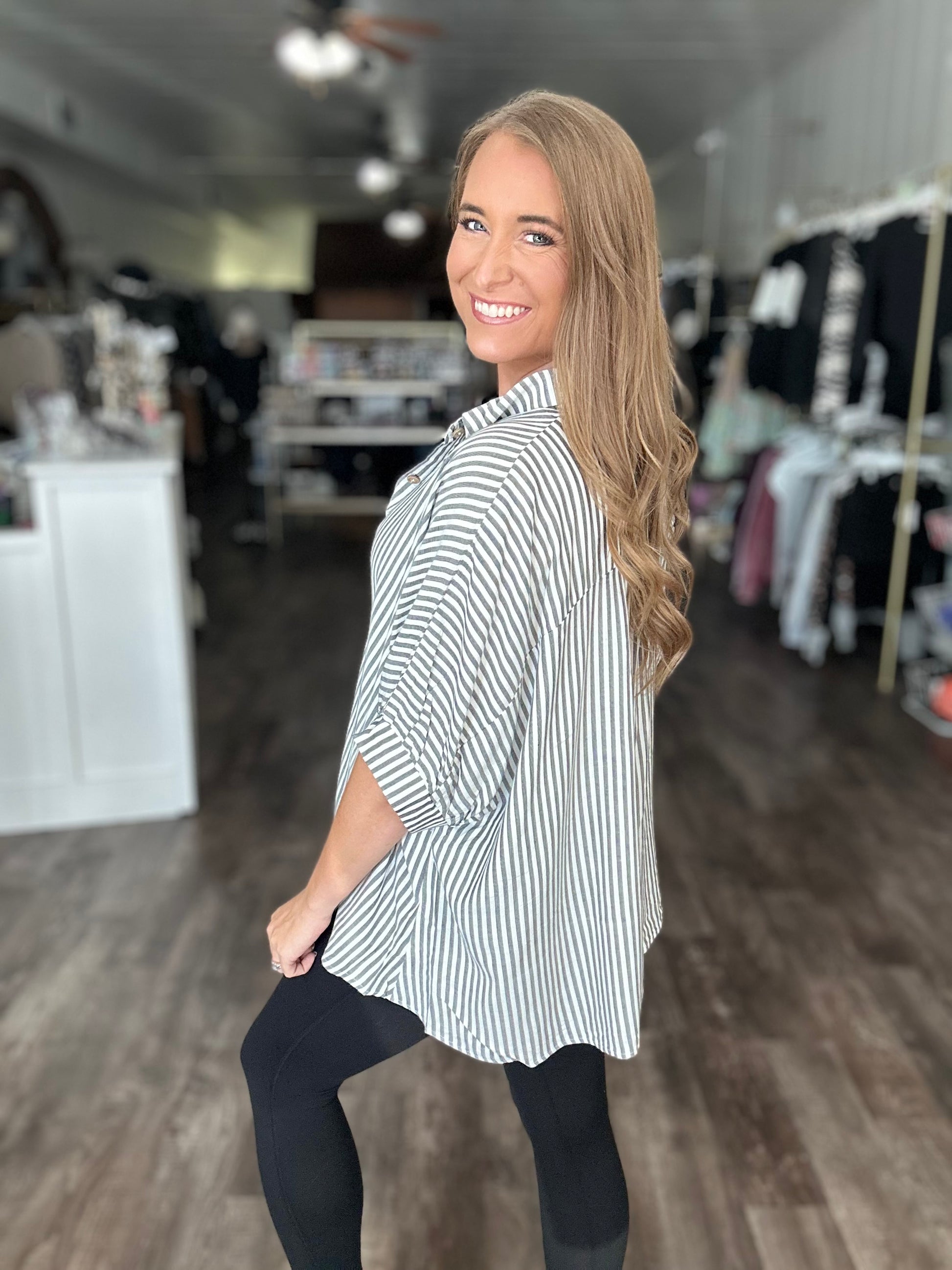 Just Friends Oversized Striped Button Down - Charcoal Black