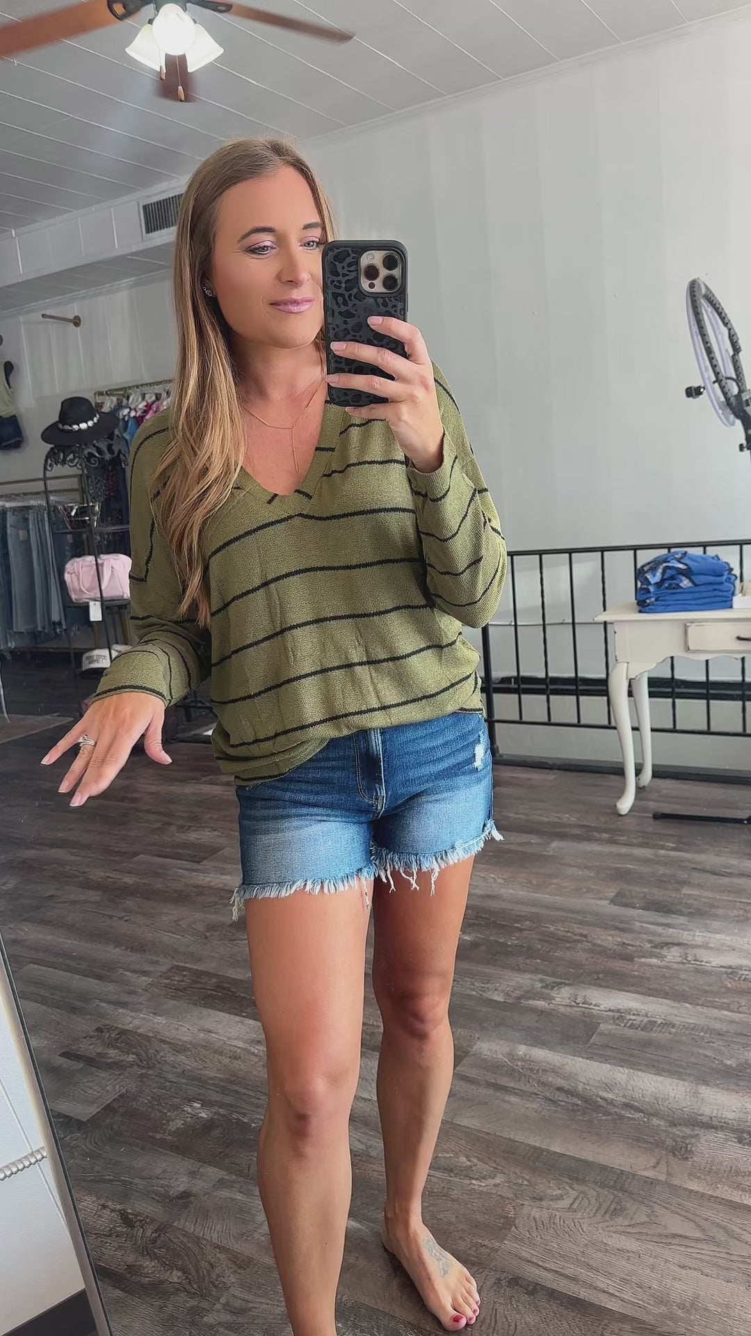 Ashley is wearing size SMALL. Her usual size is medium. She is 5'7", 145lbs, 36D bust.
