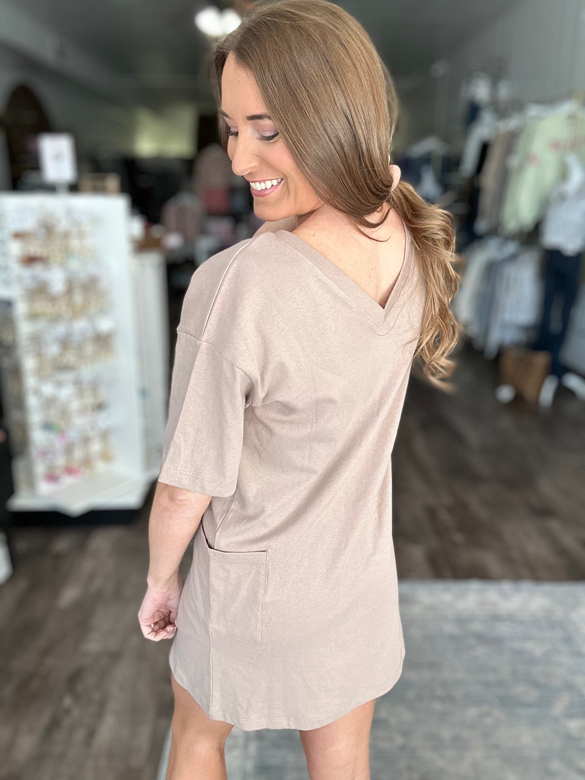 Off The Clock Reversible T-shirt Dress (Mocha)