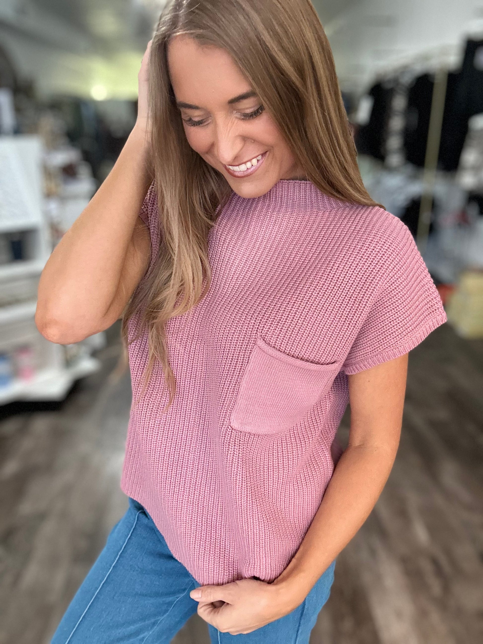 On My Mind Short Sleeve Sweater Top - Rose