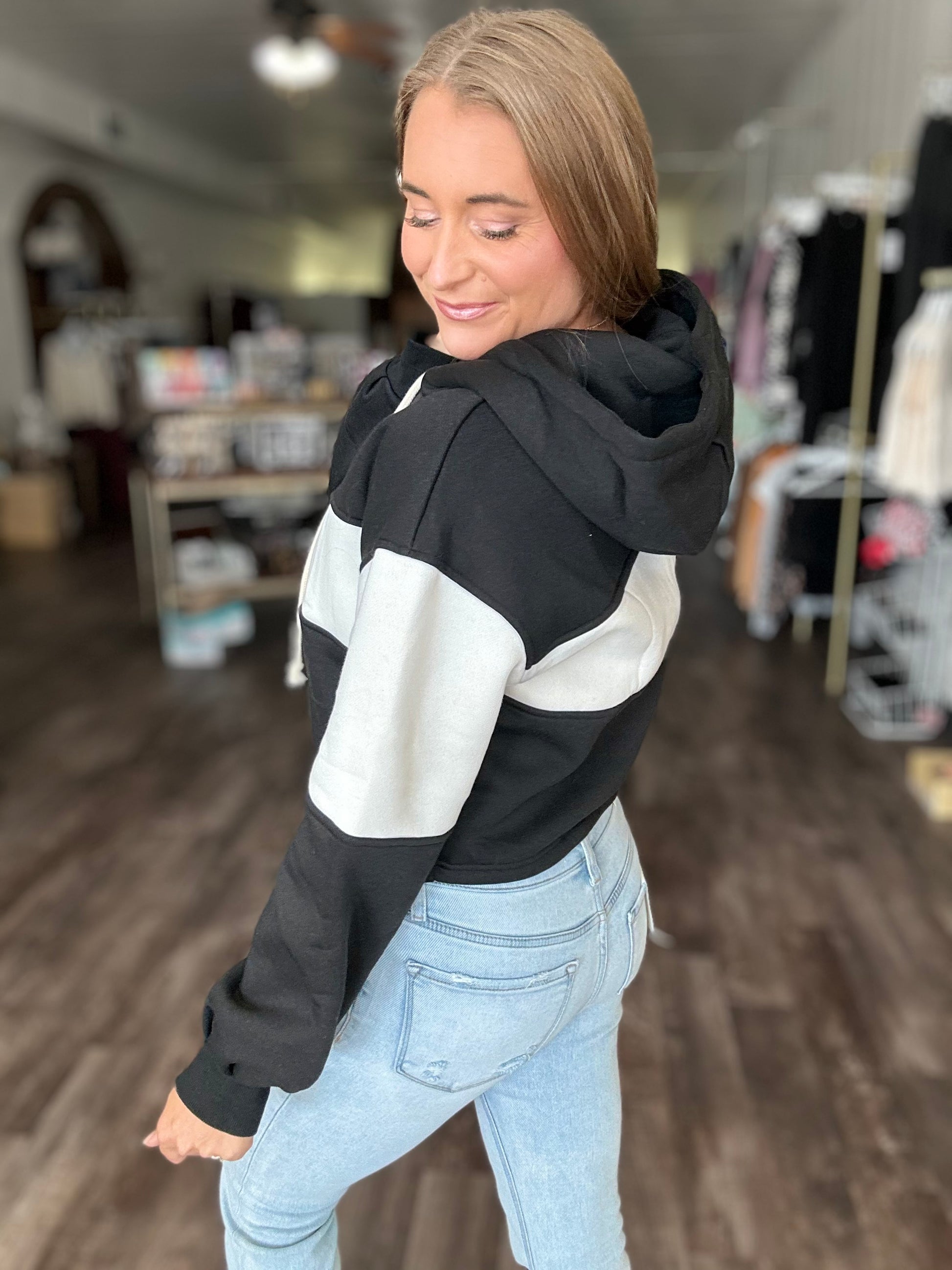 One Step Ahead Colorblock Hoodie - Black