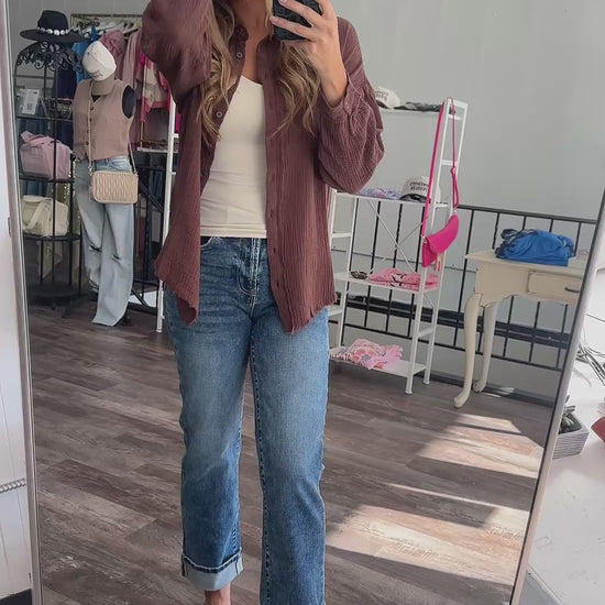 Out of Range Gauze Knit Button Down - Black