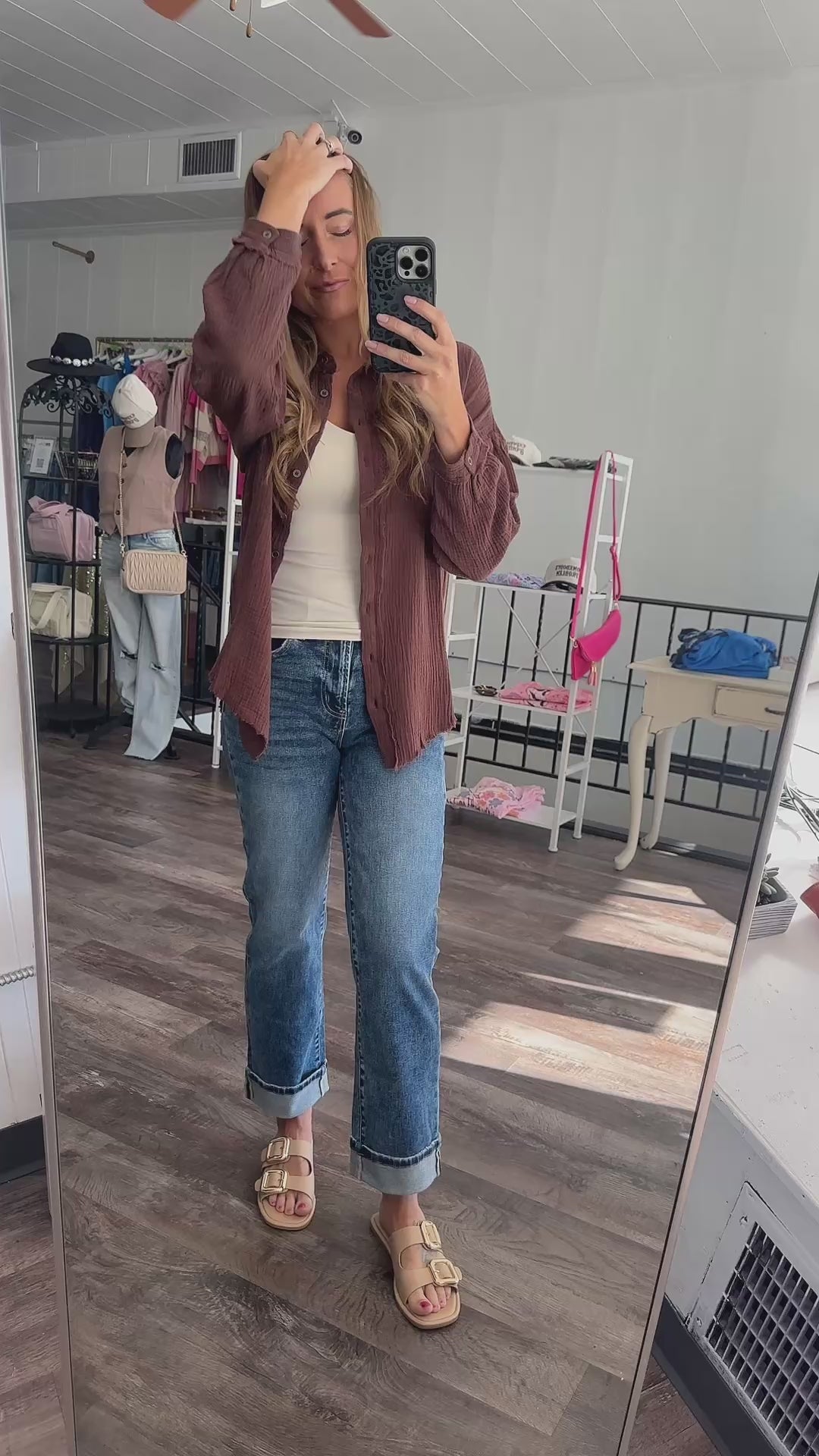 Fit: This fits a tad oversized and roomy. Ashley is wearing size small. She is typically a sm/med in tops. She is 5'7", 145lbs, 36D bust.
