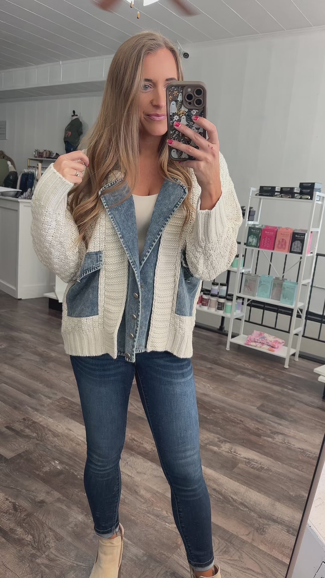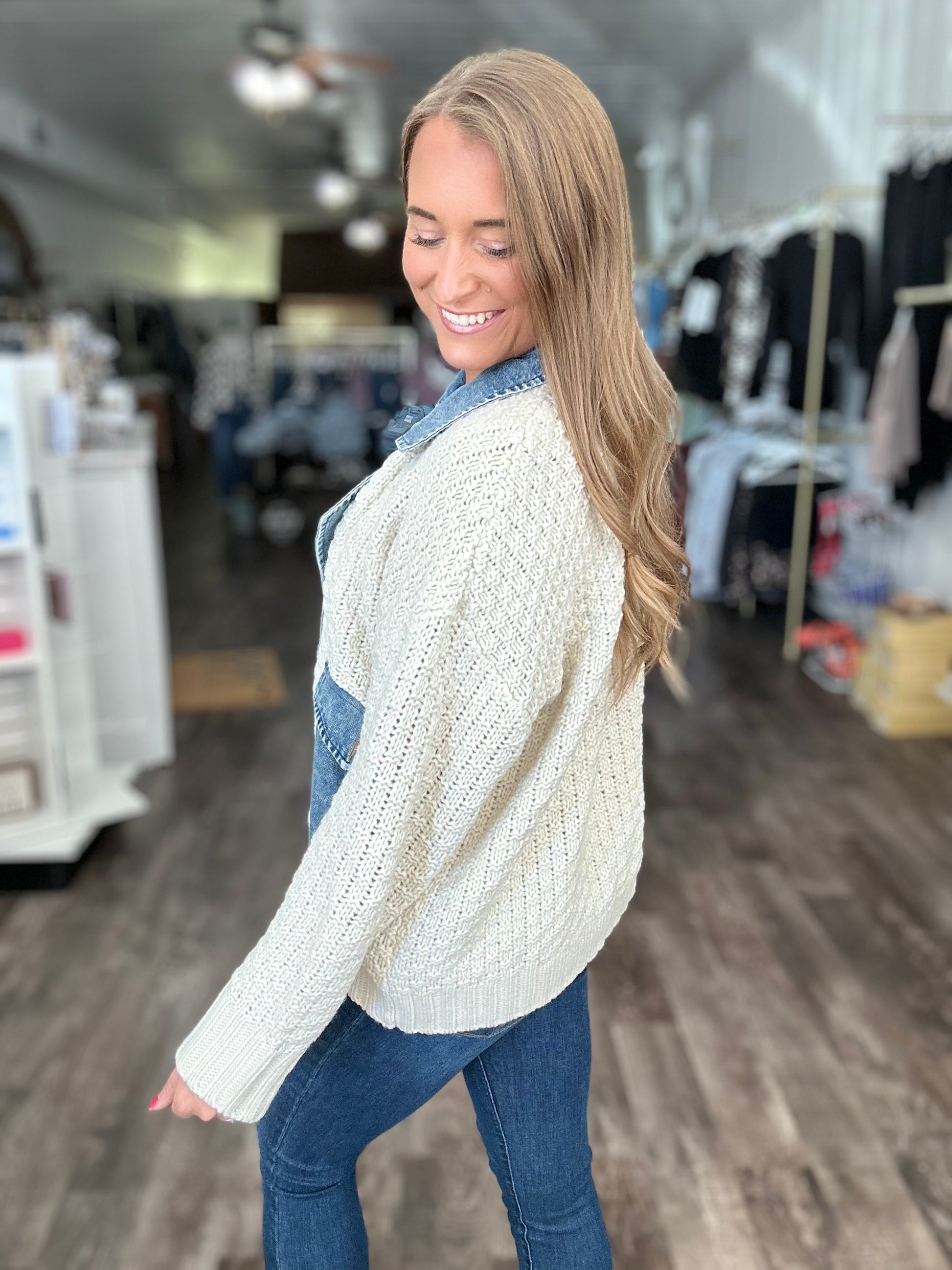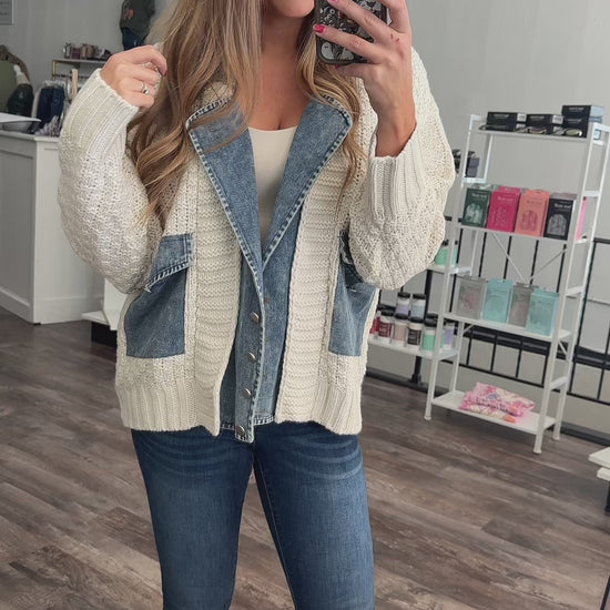 Running In Circles Mixed Sweater/Denim Cardigan