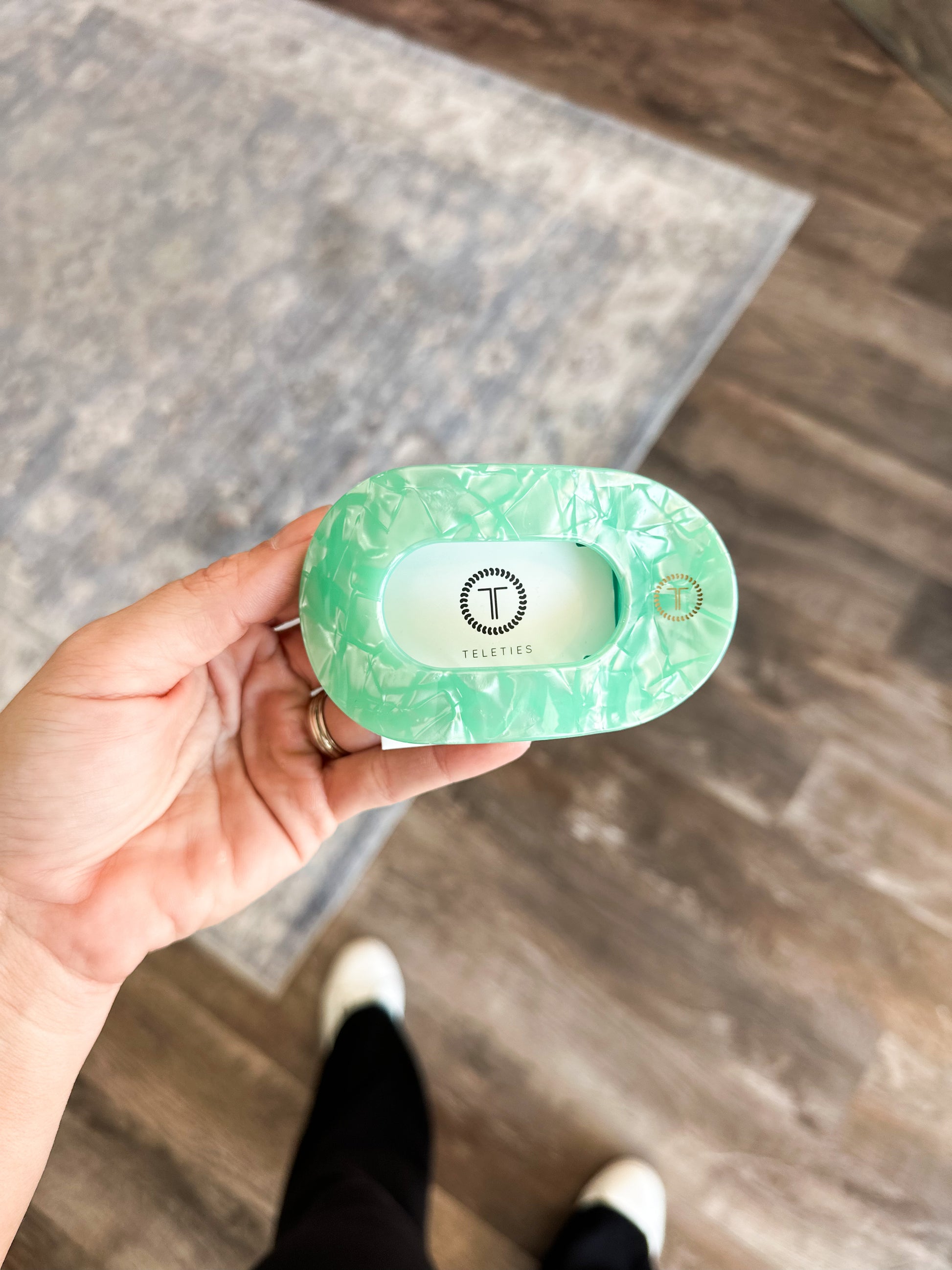 Lay flat and relax with the new TELETIES Spring Splash Medium Flat Round Hair Clip in Green. This hair clip is designed to allow you to lay back flat, do yoga, or sit comfortably in a seat with a headrest, and it is made with the same material that is nearly unbreakable.