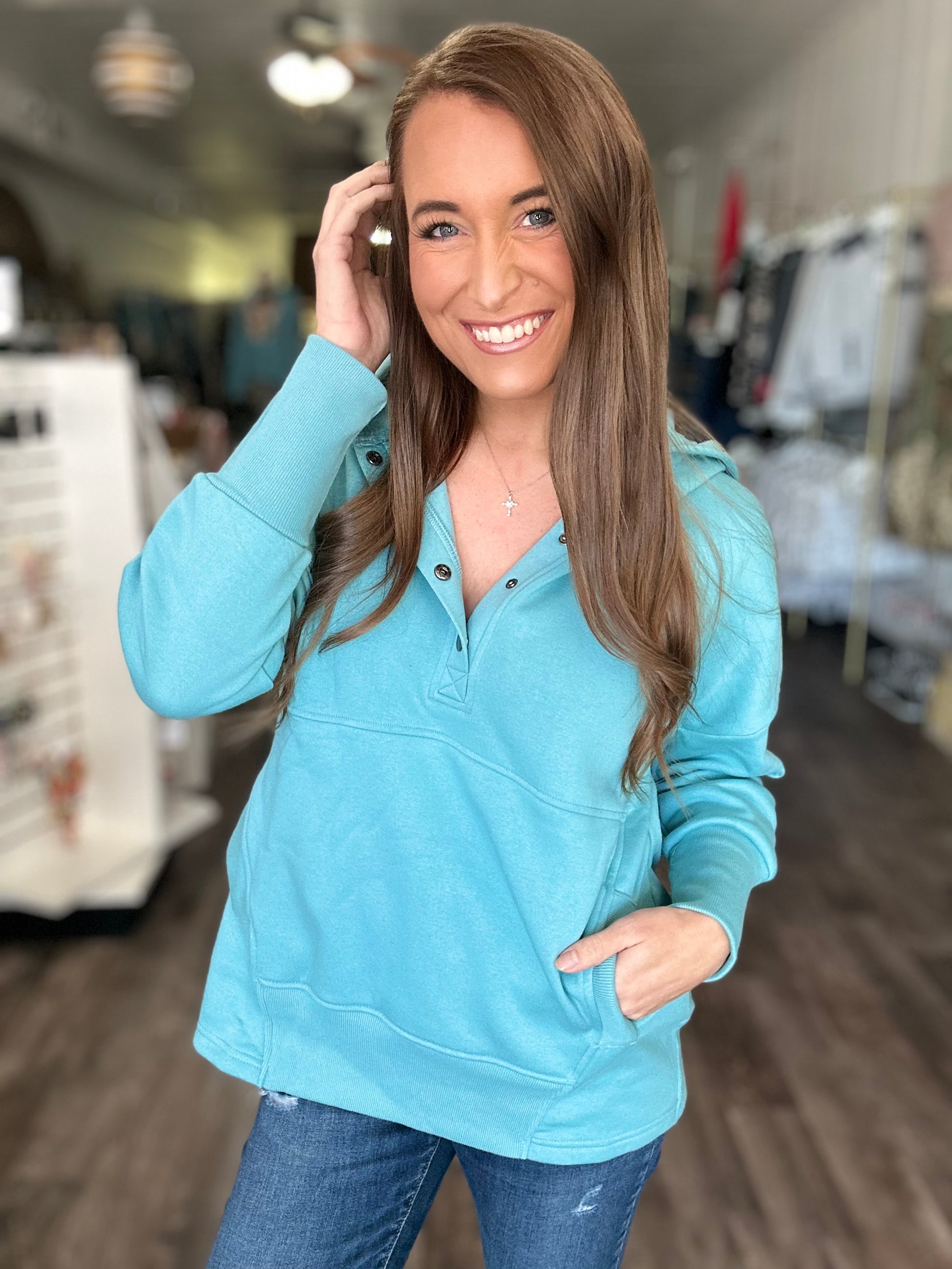 Sweet & Cozy Hooded Pullover (Teal)