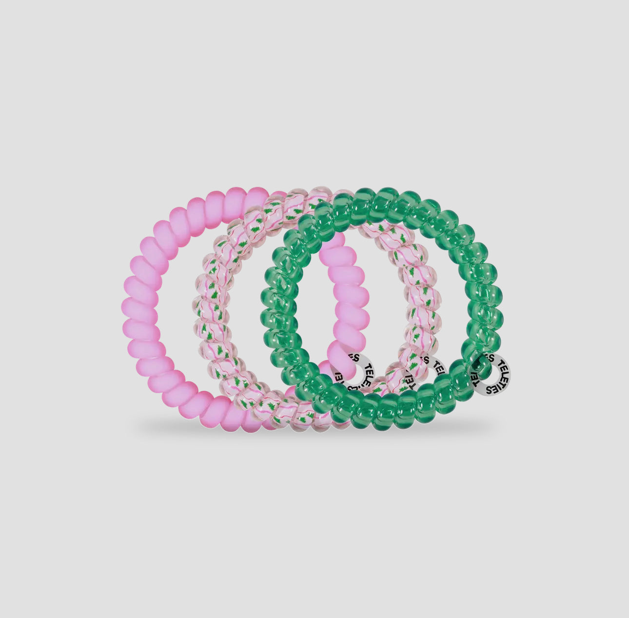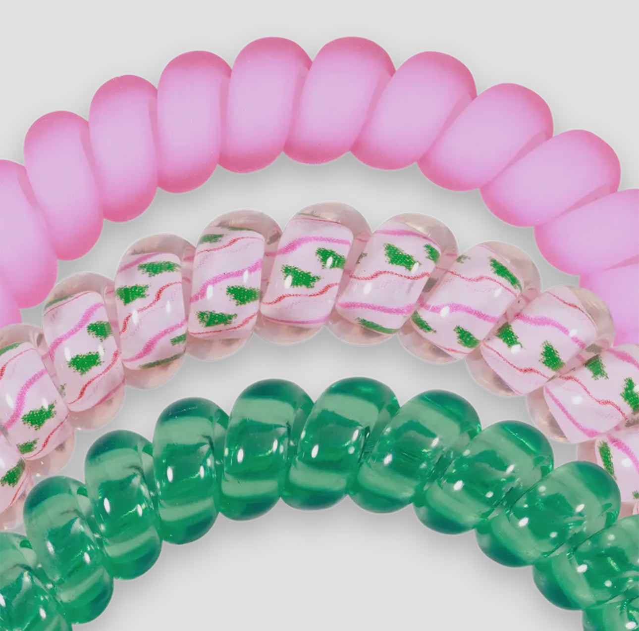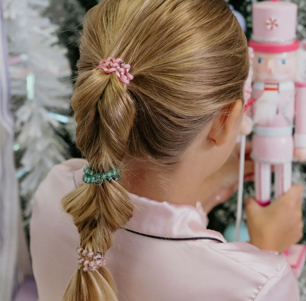 Merry Pinkmas Small Hair Ties in Pink and Green offer a strong grip without damage, doubling as a chic wrist accessory when not in use. Your new favorite hair essentials all year round.